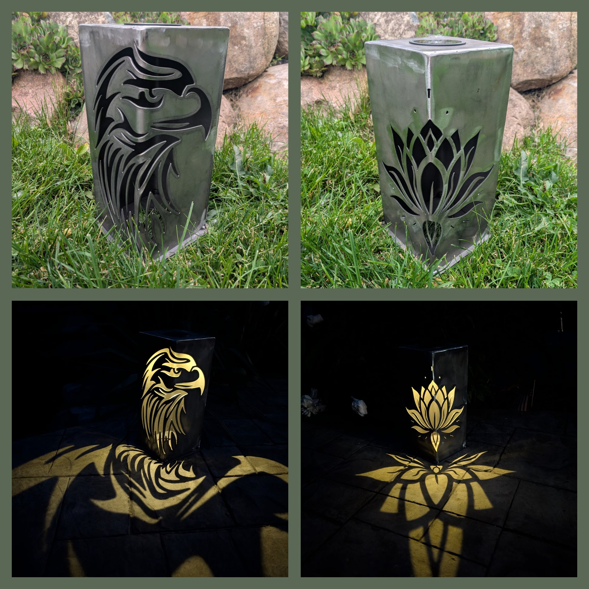 Add a touch of charm and personality to your outdoor space with our handcrafted Solar Light Pillars. Standing 14" tall and 6" wide, each pillar features a single solar-powered light that casts beautiful silhouettes onto surrounding surfaces — perfect for garden paths, patios, and landscape accents.